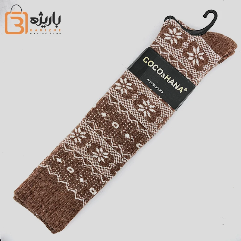 جوراب پشمی حوله ای زنانه زیر زانو طرح برف