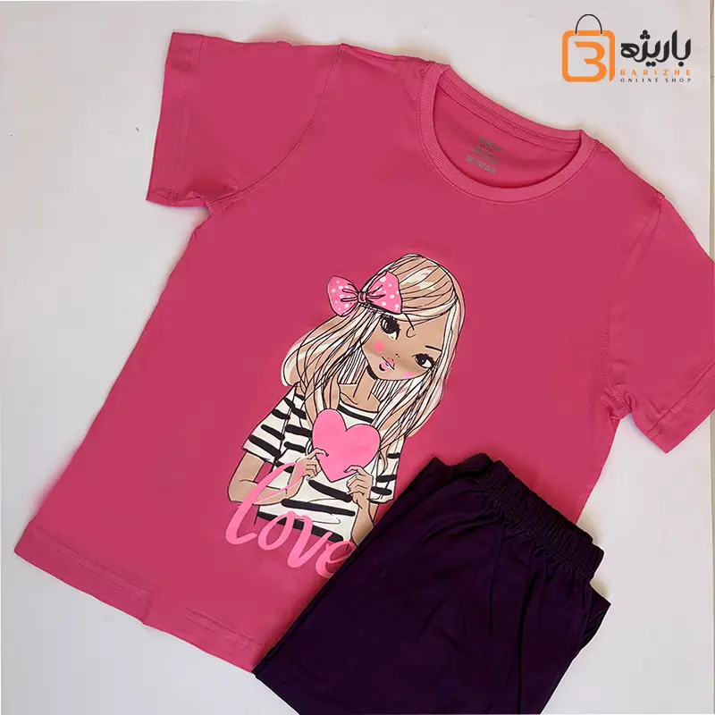 ست لباس راحتی دخترانه رز صورتی با پارچه نرم و سبک و رنگ بندی خاص در سایز های 5 سال تا 14مناسب دختران زیبای ایران زمین .